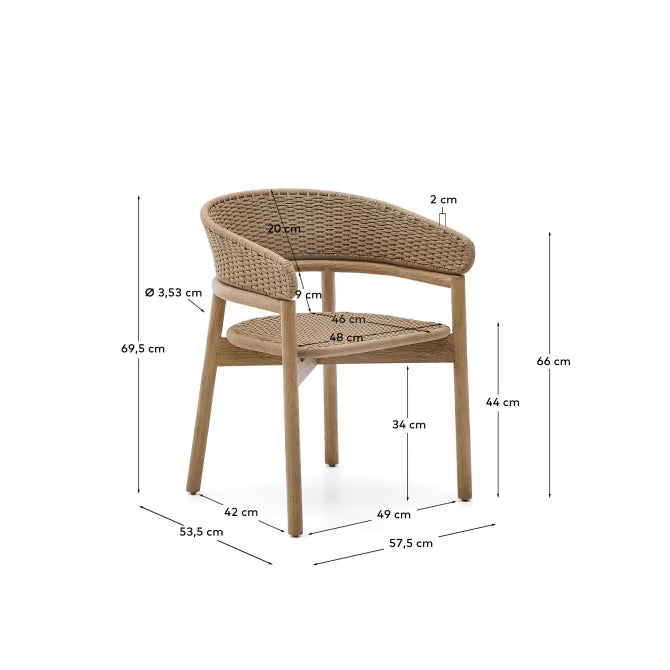 The Arinella collection represents the union of rustic and modern. Each piece combines the quality of solid acacia wood with a brushed finish, which highlights its natural tones and unique grain, making each piece one of a kind. The seat and backrest, made of UV-resistant hand-woven rope cord, provide a durable, contemporary look suitable for all types of settings.