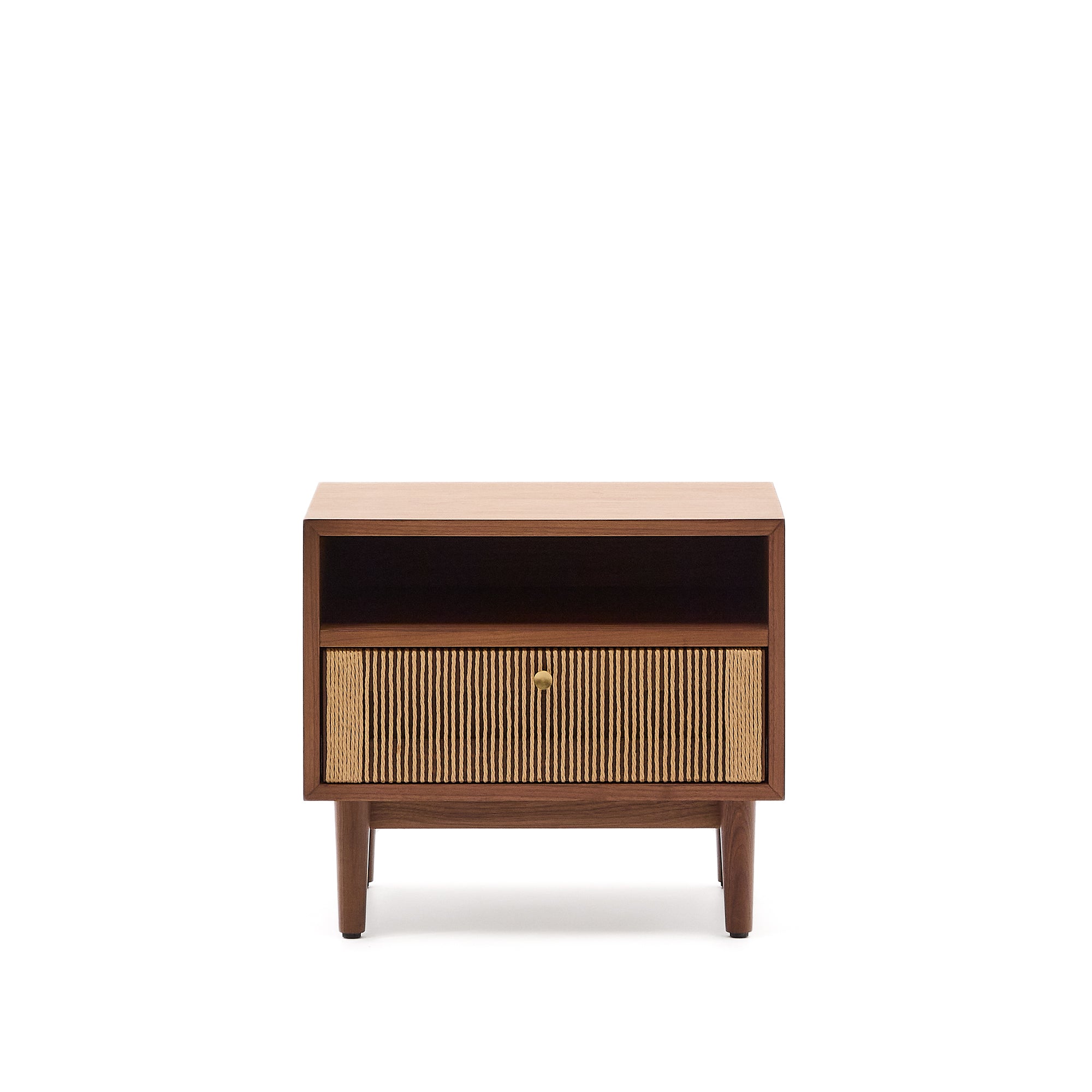 Materials: 82% MDF (Medium Density Fiberboard), 8% Walnut Veneer (Juglans nigra), 4% Walnut Wood (Juglans nigra), 3% Poplar Plywood (Populus alba), 2% Brass, 1% Paper