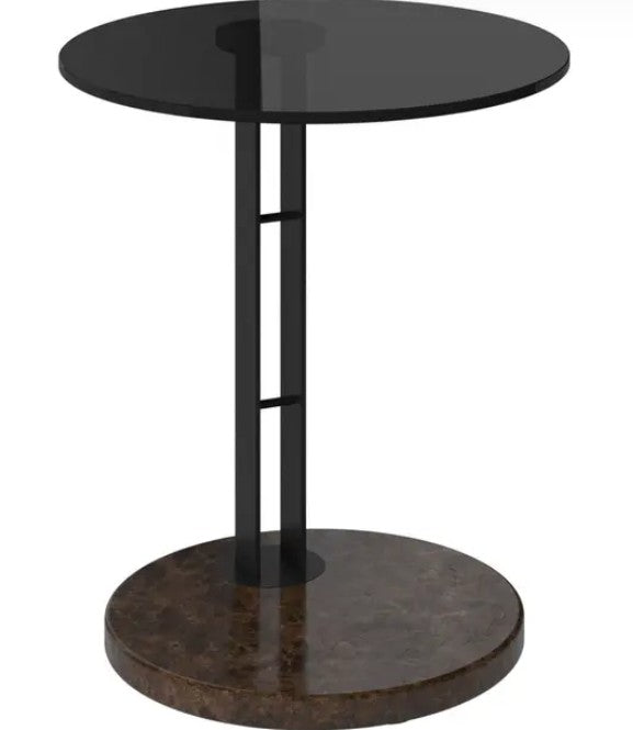 This side table combines multiple materials for a simple yet elegant look. Its sturdy construction provides stability while remaining lightweight. The rounded, compact design makes it ideal for small spaces. Perfect as a bedside or sofa side table, or even as a small coffee table, it adds a stylish touch to any room.