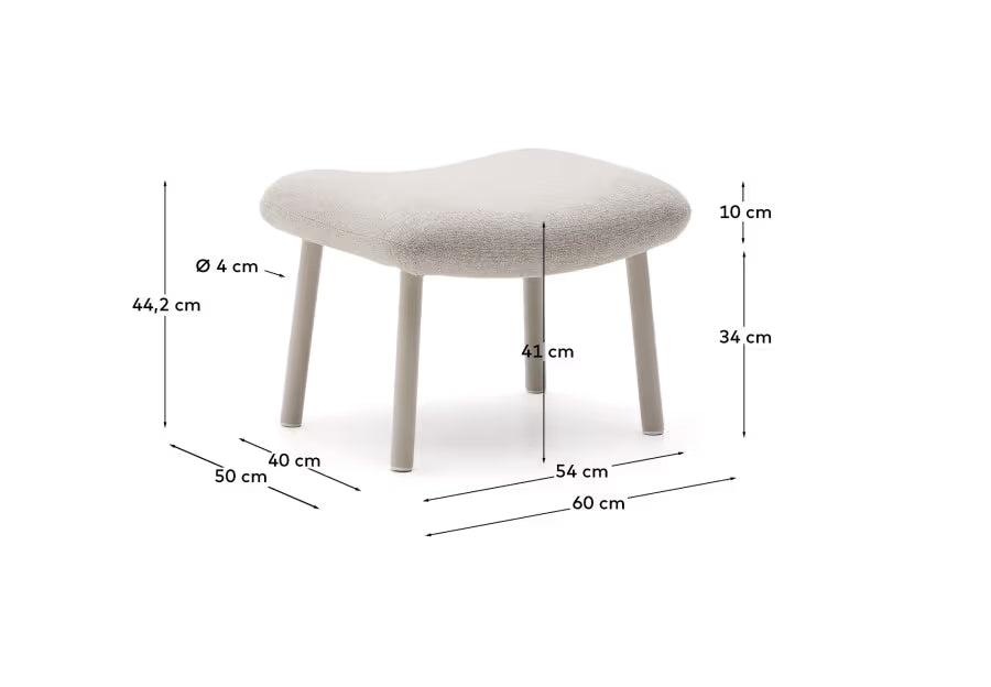 The footrest in this collection stands out for its contemporary design, inspired by the classic lounge armchair but reinterpreted with pure geometric lines and curved volumes.