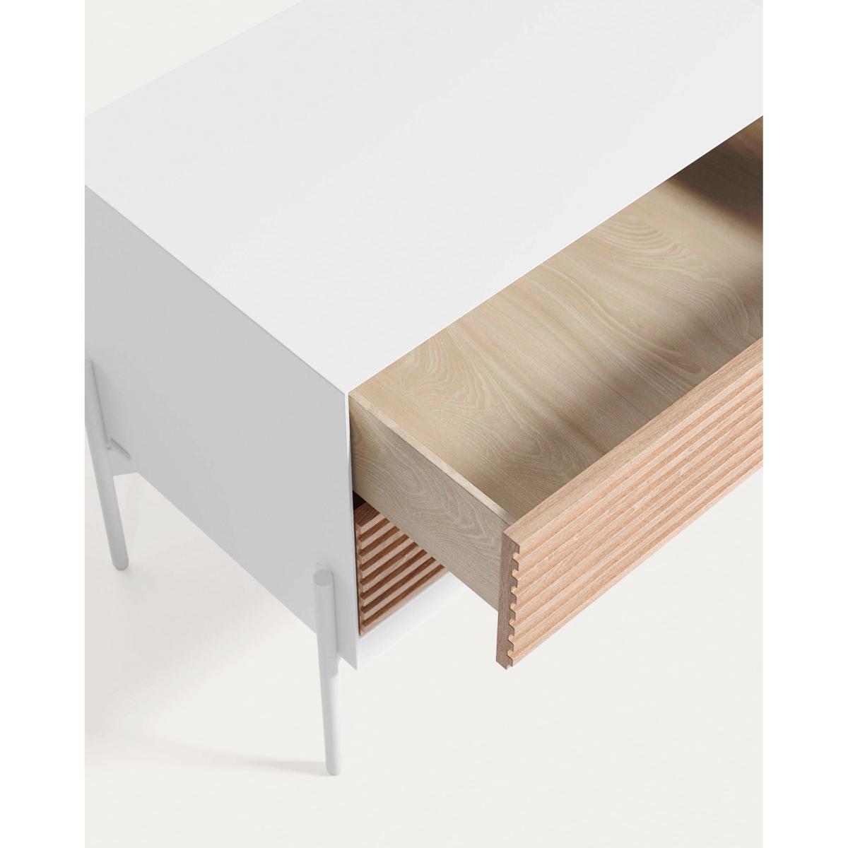 The Marielle bedside table ticks the practical, aesthetic and sustainable boxes. It cleverly plays with the tones of the ash veneer thanks to the shadows and grain of the wood.