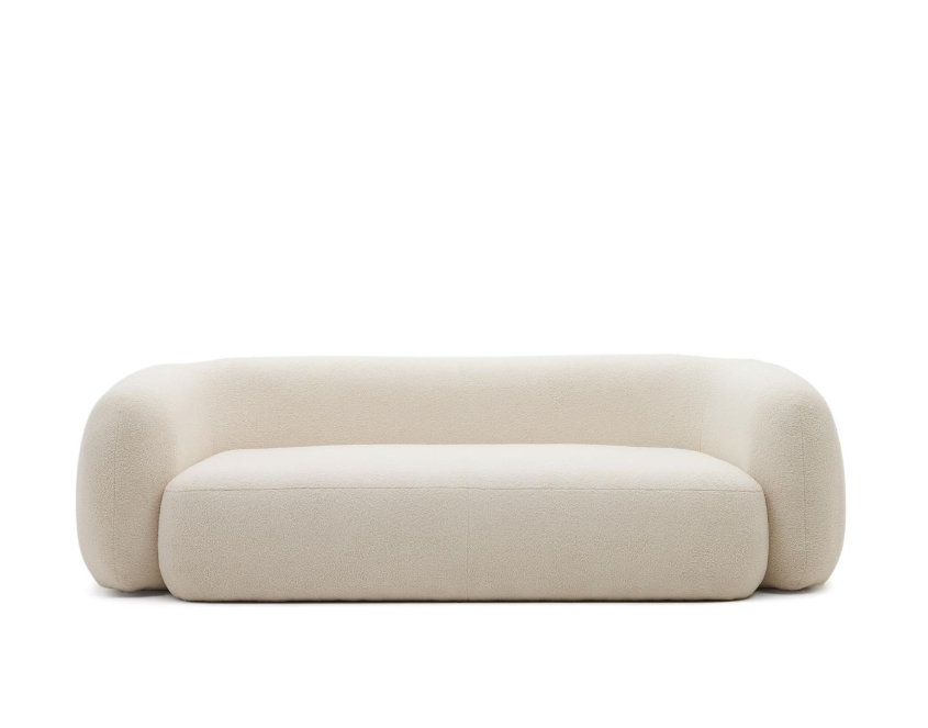 Inspired by the trend for organic shapes and sinuous lines, Martina is an austere geometric design with curved and rounded contours, which give it superior comfort and elegance. The Martina 3-seater sofa stands out for its warm and soft-touch upholstery with bouclé effect, made of 100% recycled polyester fabric.