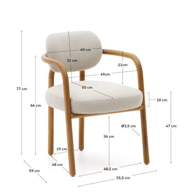 Melqui is an exclusive design by Morten Georgsen for Kave Home. Its ergonomic design and solid oak wood structure make for the perfect balance of comfort and design. An armchair created to pamper you in every way.