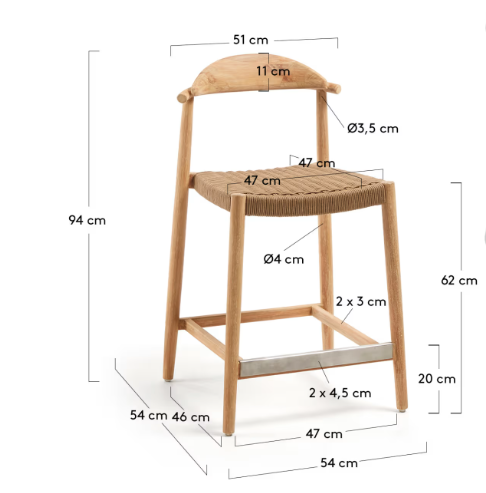 Materials: 85% Acacia wood (Acacia auriculiformis), 10% Rope, 5% Stainless steel