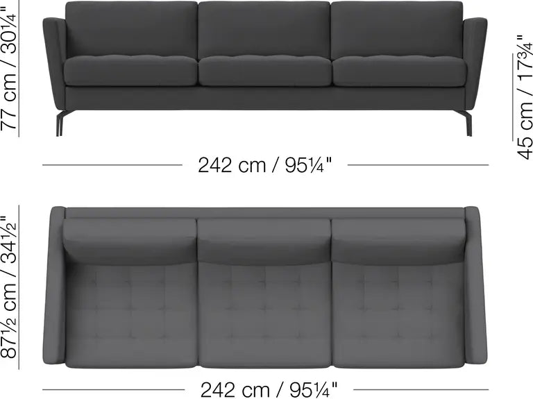 The light appearance and slender proportions make the Osaka sofa ideal for smaller spaces, while its subtle feminine look and 60s-inspired design ensure that it still carries a strong sense of style. The curved armrests emphasize the feminine aesthetic and offer a soft, inviting look.