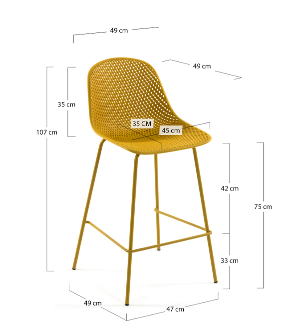 The seat of the Quinby stool is made from recyclable plastic, supported by a metal structure. It's a multi-use piece with infinite possibilities for your interior and outdoor spaces.