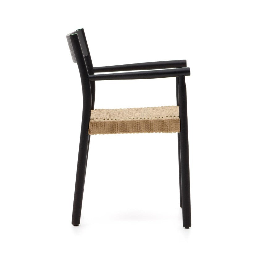 The Yalia chair is a handcrafted design with a solid oak wood structure and a seat made of hand-braided paper rope. It is ideally finished to allow nature into your house.