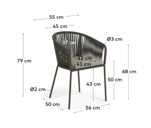 For meals inside your home or al fresco, the Yanet chair adds a stylish look with its handwoven green rope seat. Its colour brings us closer to nature, and its materials mean it can be enjoyed either indoors or in covered outdoor spaces.
