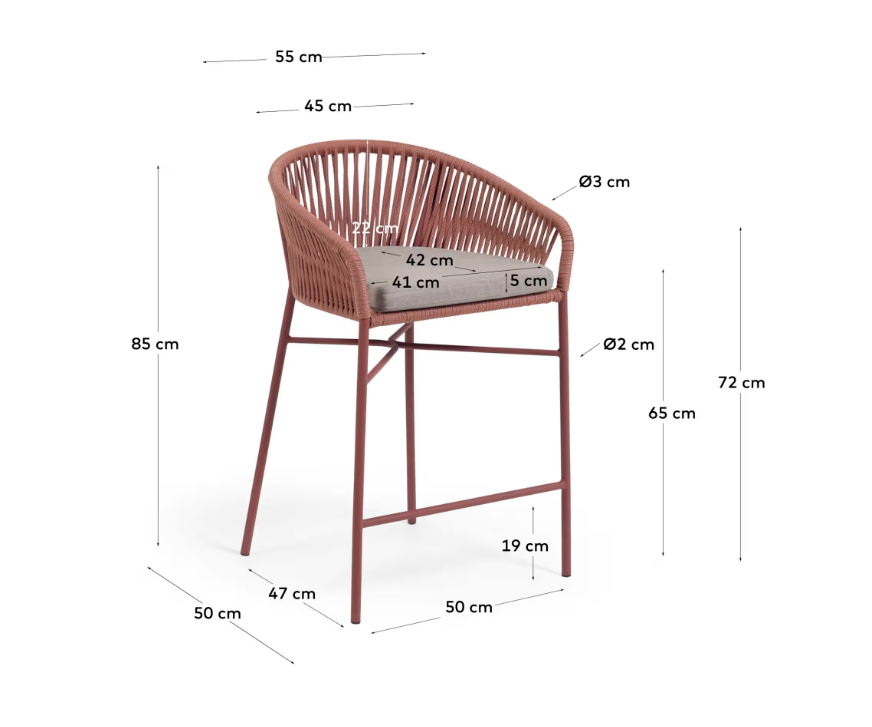 For meals indoors or al fresco, the Yanet stool adds a laid-back look to any space thanks to its hand-woven cord seat in an on trend terracotta shade. The materials used are suitable for use in covered outdoor spaces.